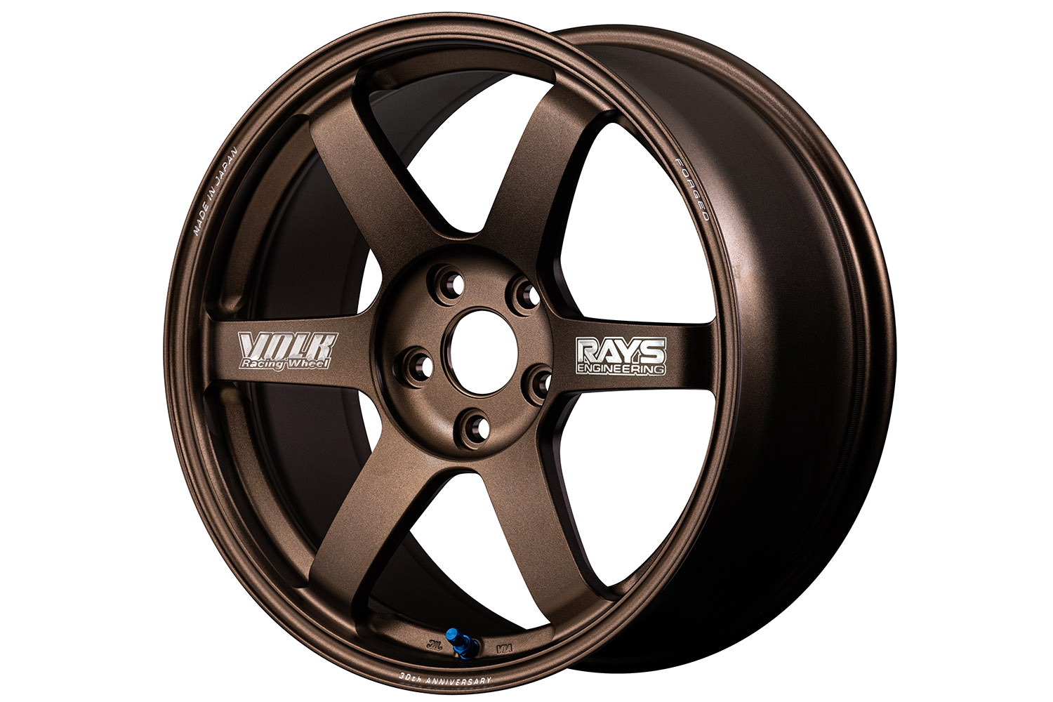 • ボルクレーシングTE37サーガSプラスをベースとしたTE37の30周年記念モデル。最新の強度基準を備えつつ、当時のスポークデカールやカラーリングを採用するのが特徴。バルブも初代同様ブルーカラーだ。ステッカー仕様だけでなく、特別なロゴマシニング仕様も設定あり。リムフランジ部には「30th ANNIVERSRY」のマシニング文字も刻まれている