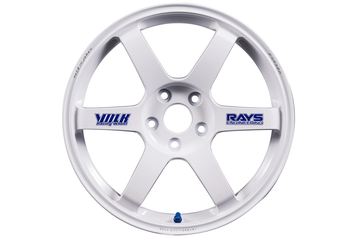 • ボルクレーシングTE37サーガSプラスをベースとしたTE37の30周年記念モデル。最新の強度基準を備えつつ、当時のスポークデカールやカラーリングを採用するのが特徴。バルブも初代同様ブルーカラーだ。ステッカー仕様だけでなく、特別なロゴマシニング仕様も設定