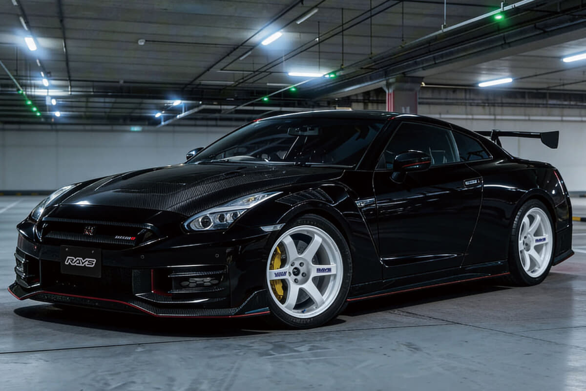 そんな王道の系譜に連なるボルクレーシングTE37サーガSLに、待望の20インチサイズが新たに追加。いよいよR35GT-Rなどハイパワーなスポーツモデルにも装着できるサイズが登場した。そのラインアップにはR35GT-RのTスペックやニスモの10.5J、フロントフェンダーのワイド化を前提としたチューナーサイズまでが含まれていて、履かせ方のバリエーションもさまざまだ。純正より軽量で、レーシングコンケイブ形状であり、ダイヤモンドカット×ブラッククリア仕上げにレッドの差し色というSL特有のフィニッシュは迫力も満点だ。