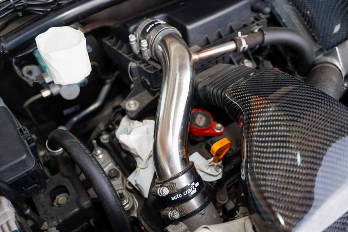 決勝の8周を全開で走り切るなかで、泉さんはあることを実感した。真夏のレースもある東北660ターボGPで重要なのは、パワーよりもクーリングだということだ。狭いエンジンルームにターボエンジンを搭載するHA36アルトワークスは、水温や吸気温度が上がりやすく、パフォーマンスの低下を招くばかりか、オーバーヒートなど重大なトラブルにつながる危険性もある。そこで泉さんは電動ファンを任意で作動させるコントローラーや、インタークーラーに水を噴霧して強制的に冷却するスプレーを採用。さらに吸気温度を下げるためのダクトを設け、夏場でもパワーダウンしないよう対策済みだ。それでも暑い時期は物足りなさを感じており、今後に向けた課題はまだまだ山積みだと話す。