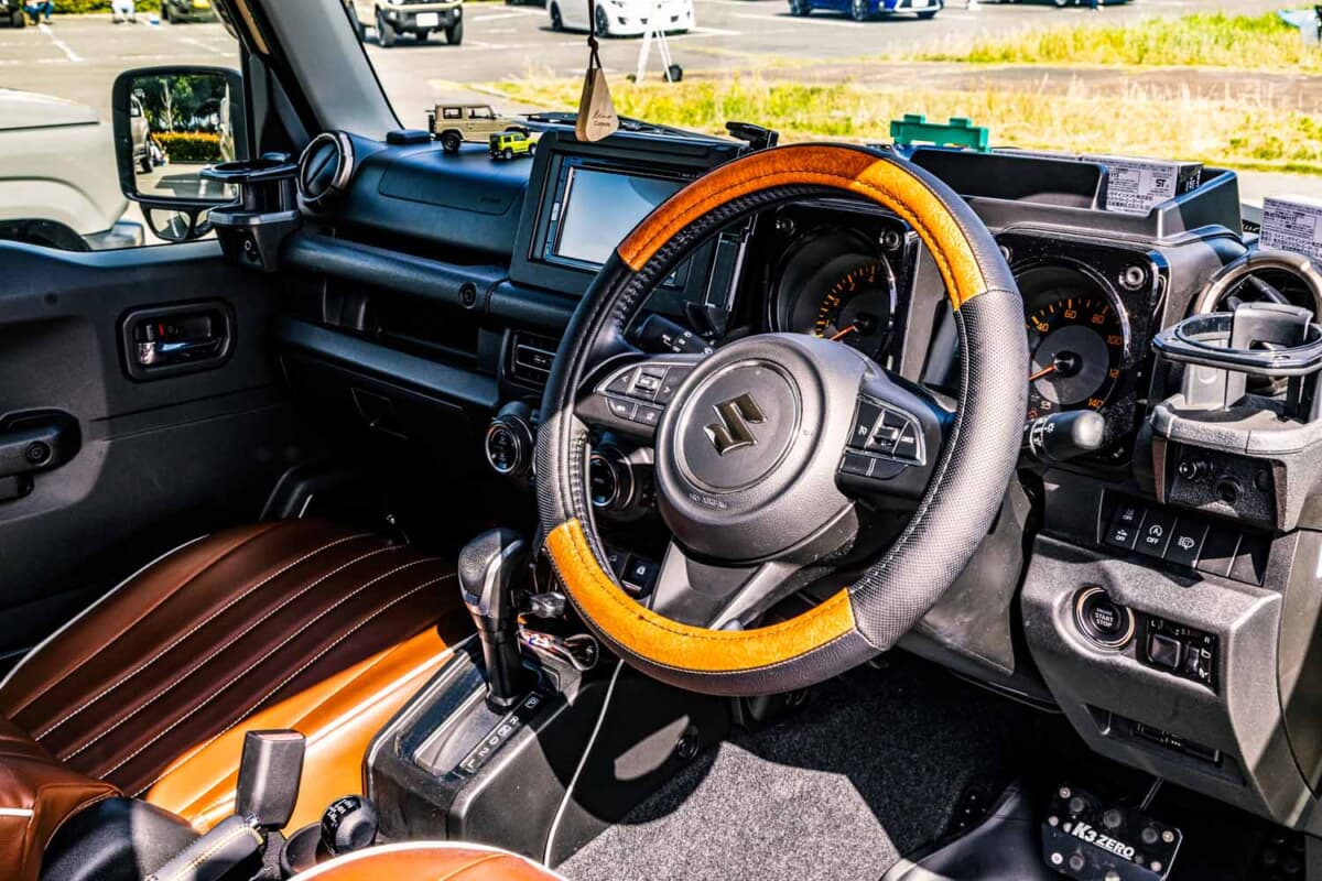• スズキ ジムニー:ステアリングにもカバーを装着している