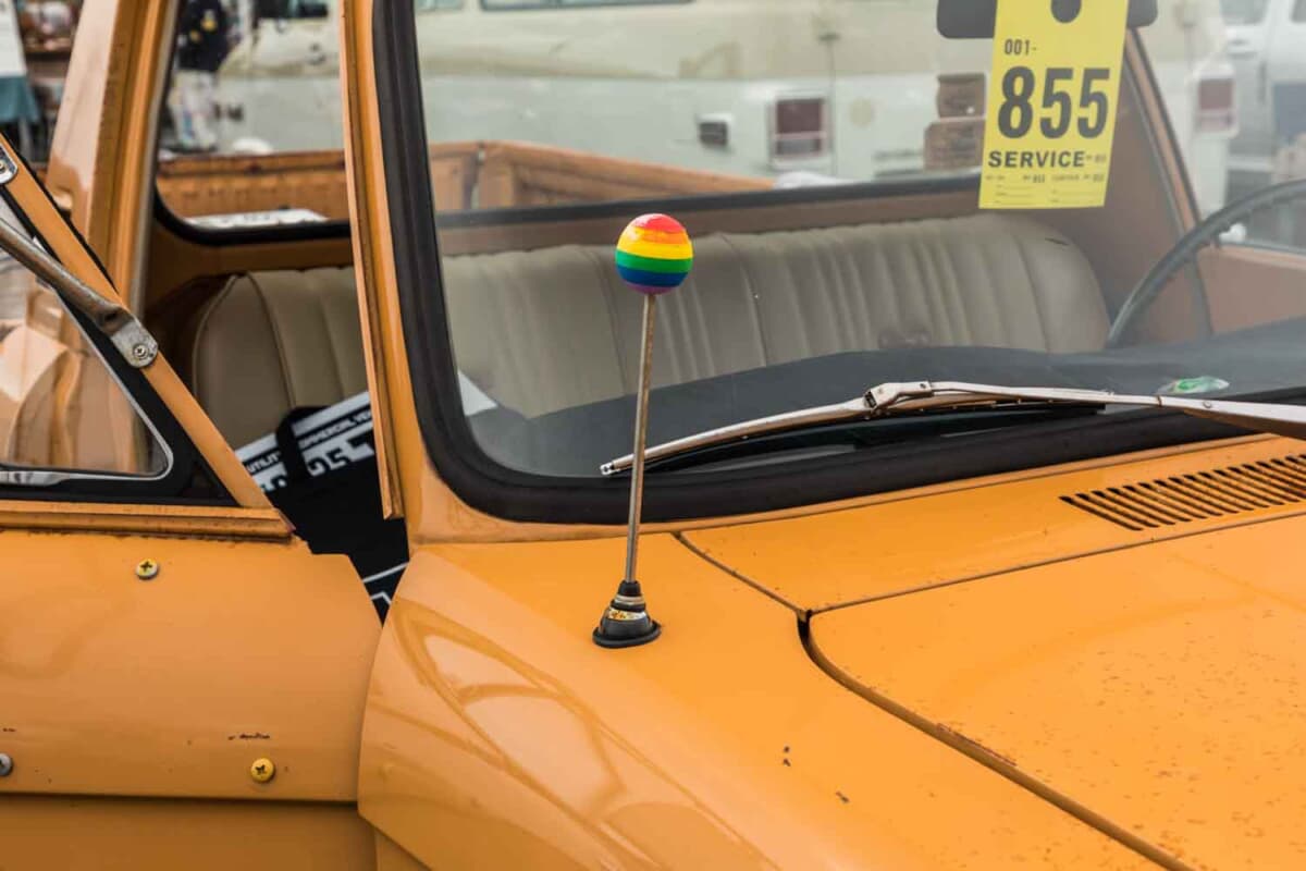 鮮やかなオレンジ色のボディカラーはなんとオリジナルペイントで、傷みやすいベッド(荷台)の内側もオリジナルのままだ。商用車ということを考慮すると、驚くべきグッドコンディションである。