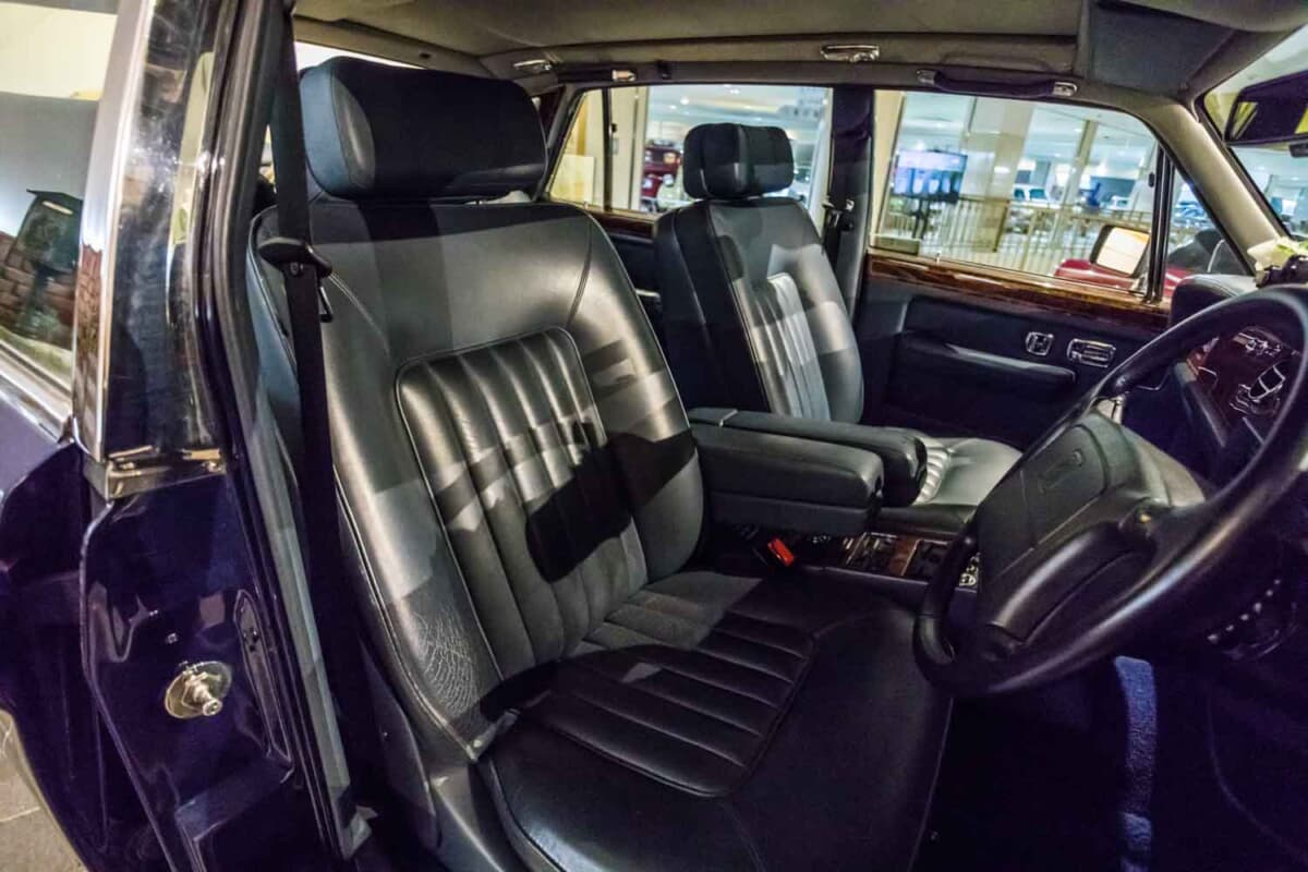 今回紹介するのは、日本自動車博物館に収蔵されている1993年式のシルバースパーIIというモデルだ。ロールスロイスとしては比較的新しくごく一般的なモデルとなるが、その出自が面白い。このクルマはもともと日本の英国大使館が所有していた個体で、1999年2月まで公用車としてサッチャー首相やブレア首相などの歴代の英国首脳や、チャールズ皇太子やダイアナ妃などの英国皇族(いずれも肩書は来日時のもの)の来日時に使用されたという、非常に珍しい1台なのだ。