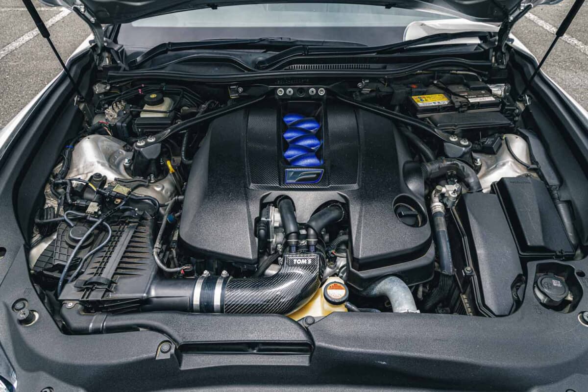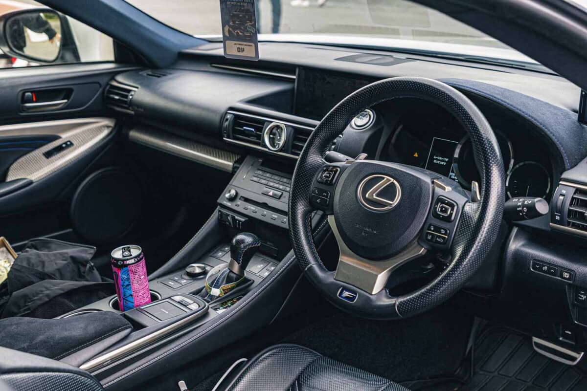 オーナーの秋吉拓人さんは、このクルマの前は「エアサスでベタベタ」にローダウンしたアルファードに乗っていたという。その後スポーツカーやセダンへの乗り換えを考えるようになり、20歳のころから欲しかったRC Fに目を向けることになった。当時は新車価格が高くて手が出なかった1台を、2024年についに手に入れたのだという。購入当初からエアロや車高調がセットされていたが、その後、自分好みのセッティングへと変更を加えていった。
