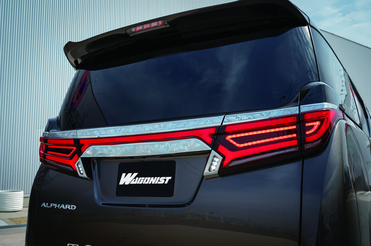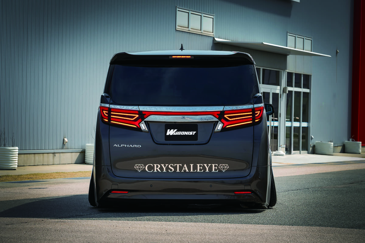 • トヨタ アルファード:ファイバーの面発光の美しさとLEDのツブ感とのバランスが絶妙な、クリスタルアイ製テールランプ