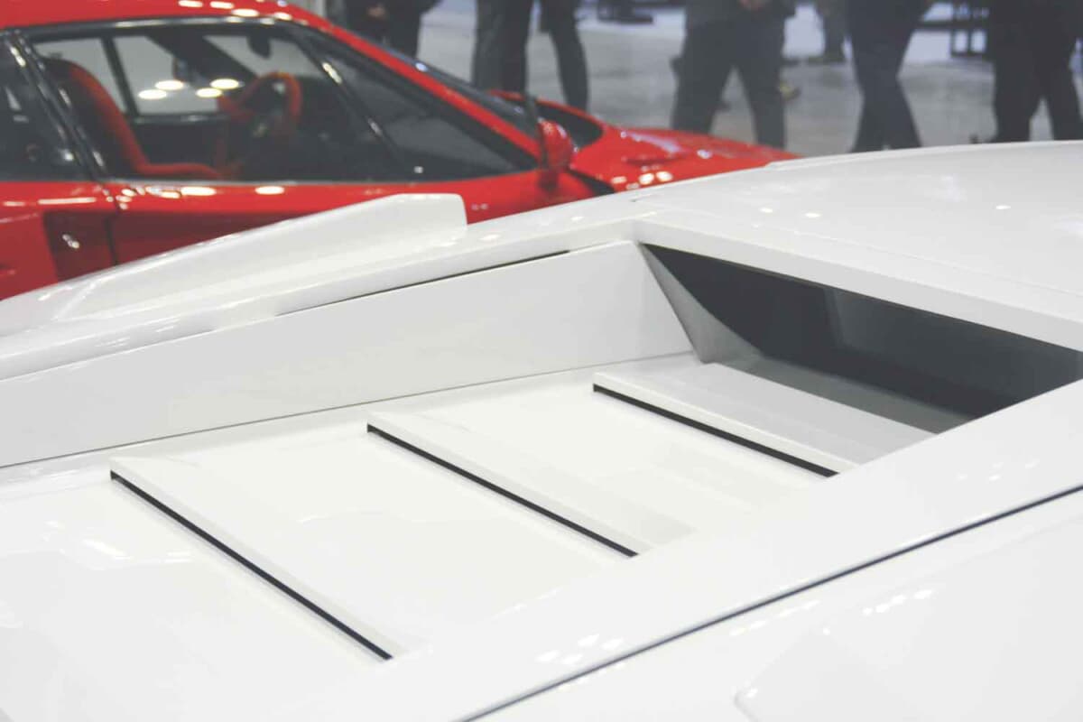 • ランボルギーニ カウンタック LP400S:放熱用スリットが刻まれた美しいエンジンフードだ