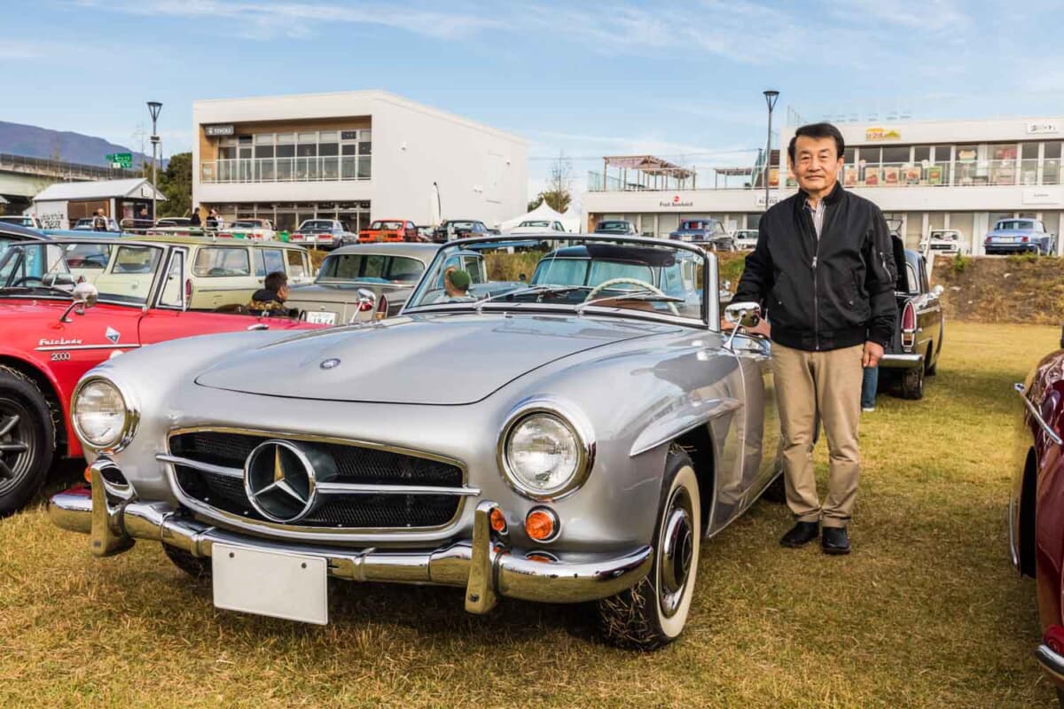 クラシックカーミーティング in 山梨南アルプスには、国産旧車だけでなく数多くの外国車が集まった。そんななかで気になったのが、美しいボディを持つ丸目ヘッドライトのメルセデスベンツ 190SLだ。