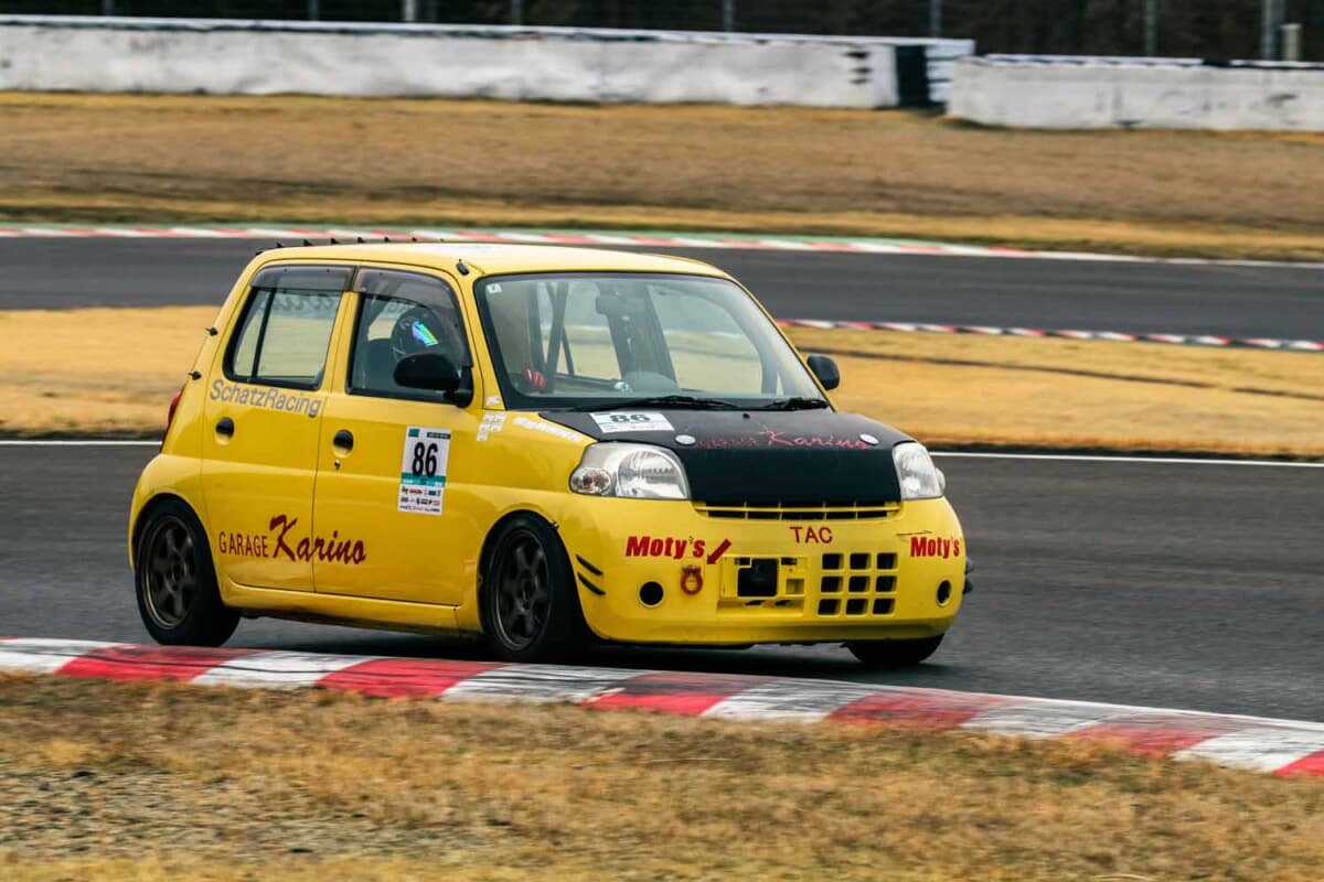 2クラスは昨年スポット参戦だったNo.61高橋康平が、唯一の1分54秒台という圧倒的な速さでポールを獲得した。続くNo.86竹中康平とNo.601大堀斗夢は1分55秒台で、高橋に追いつくのが難しいほどのタイム差だ。高橋は「車両は昨年とほぼ変わっていません。ただ新品タイヤでも速く走れるよう練習したのと、走り方に合わせて足まわりを小変更してきました」と話す。決勝ではスリップストリームを活かした高橋が1クラスの下位に割って入るほどの速さを見せ、ぶっちぎりのポール・トゥ・ウィンを決めた。後続も順位を入れ替えるまでには至らず、準優勝は竹中、3位は大堀でフィニッシュした。
