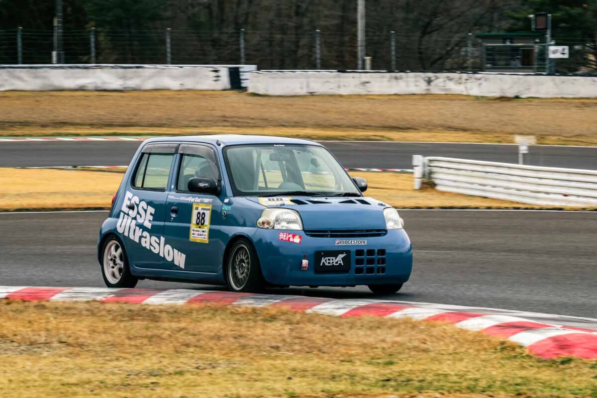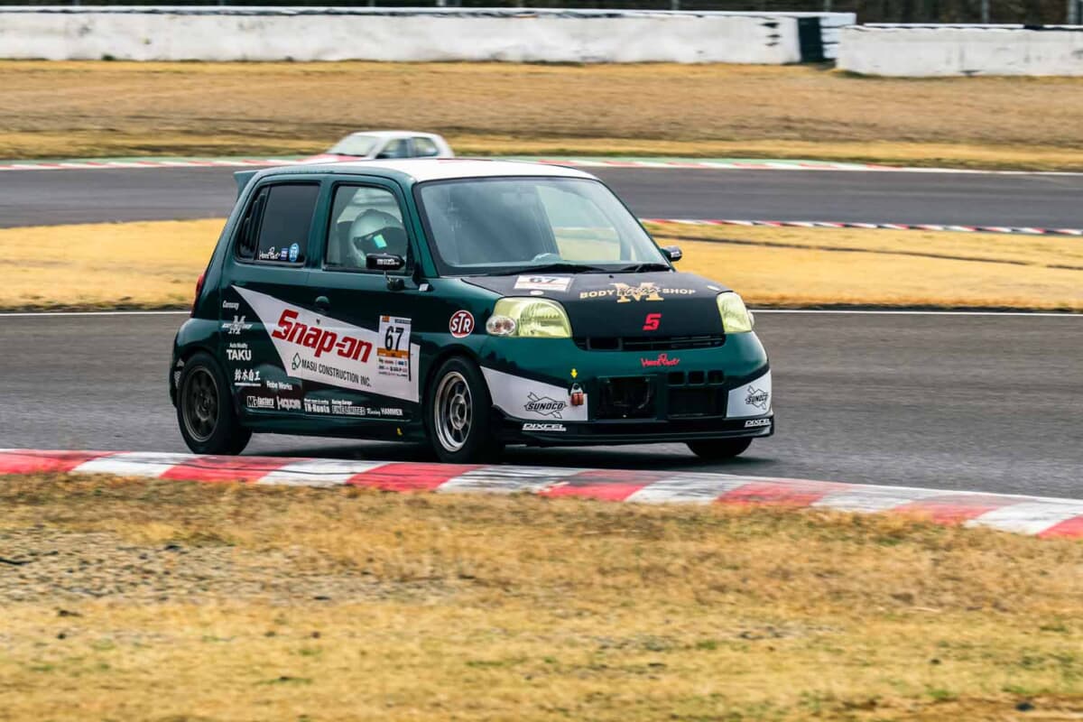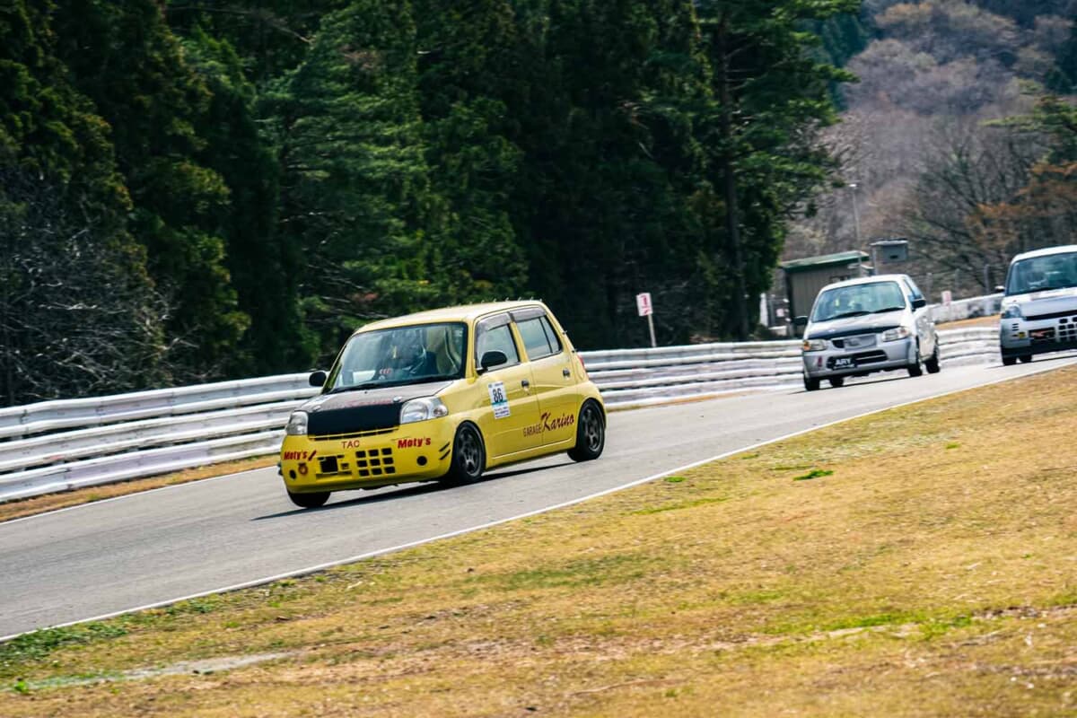 CVTやAGSなど2ペダル限定の4クラスは、ダイハツ「エッセ」のNo.67鈴木茂がポール・トゥ・ウィンを達成した。今回は併催されたHA36カップ2クラス(AGS)に専念するエントラントが多く、台数こそ少なかったが、ベストタイムは1分58秒428と3クラスの上位陣に引けを取らない。2ペダル車のポテンシャルを改めて見せつけてくれた。ビギナー限定の5クラスはNo.810山根雄二が予選2番手から見事な逆転劇を演じ、初めて表彰台の真ん中をゲットした。さらに経験を積み、3クラスで戦う日が楽しみだ。