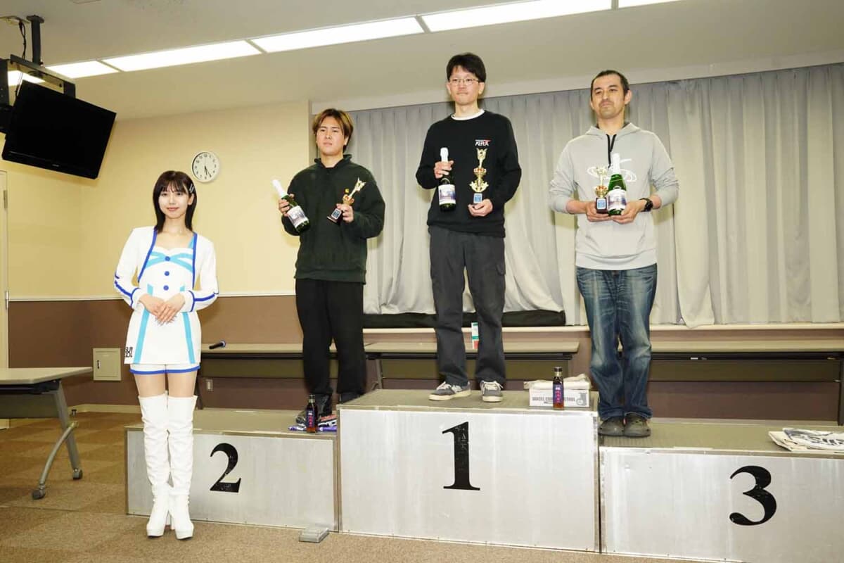 もっともチューニングの自由度が高い1クラスは、JAF公認レース出身のベテランが揃うなか、2025年は若手のNo.1新関透がチャンピオンを獲得した。ゼッケンを最高峰クラスの王者らしく1に変更し、連覇を目指して予選のタイムアタックに臨んだ。4月とは思えない陽気のためコースレコードには届かなかったものの、ベストタイムは1分51秒677で堂々のポールポジションを獲得した。続くのは新関の師匠であるNo.21大塚猛、3番手はやはり若手のNo.154小松日高だ。決勝はスタート直後こそ大塚に先行を許したが、すぐトップを奪還して安定したラップを刻み、幸先のいいポール・トゥ・ウィンを飾った。準優勝は大塚、3位は小松となった。なお決勝のファステストラップは小松が記録した。