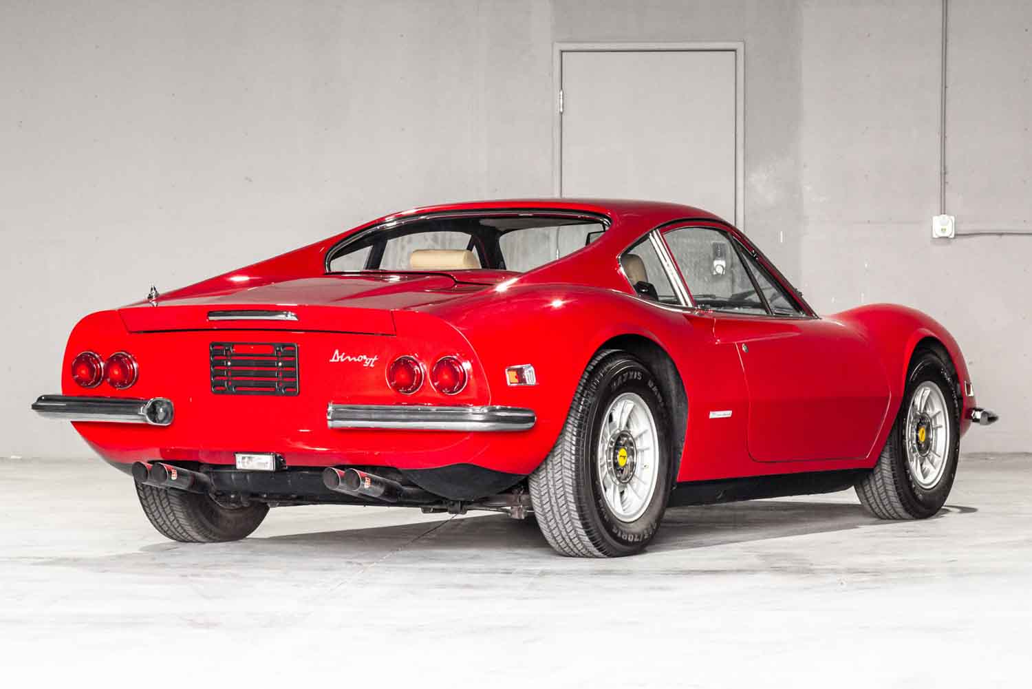 フェラーリに残されている記録によると、このディーノ246GTは、1973年1月17日にファクトリーをラインオフしている。新車時の仕様は、ボディカラーがブルー・ディーノ・メタリザート(カラーコード106-A-72)、インテリアはベージュ(同VM3234)のコノリーレザーで、それに与えられたシャシーナンバーは「04566」だった。