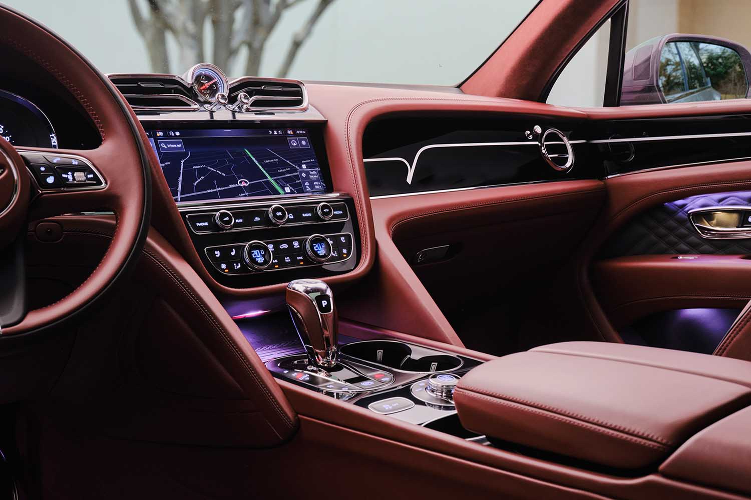 内装はベルーガブラックとマリナーホワイトのツートーンで、パネルはグランドブラック仕上げとなる。ピラー・ボックスレッドのピンストライプがキャビン全体を囲み、ダッシュボードのV字装飾が空調ベンチレーターへと続いている。シートにはシルバーのベントレーウィング刺繍が施され、ヘッドレストにはヴィクトリスのパターンが型押しされている。