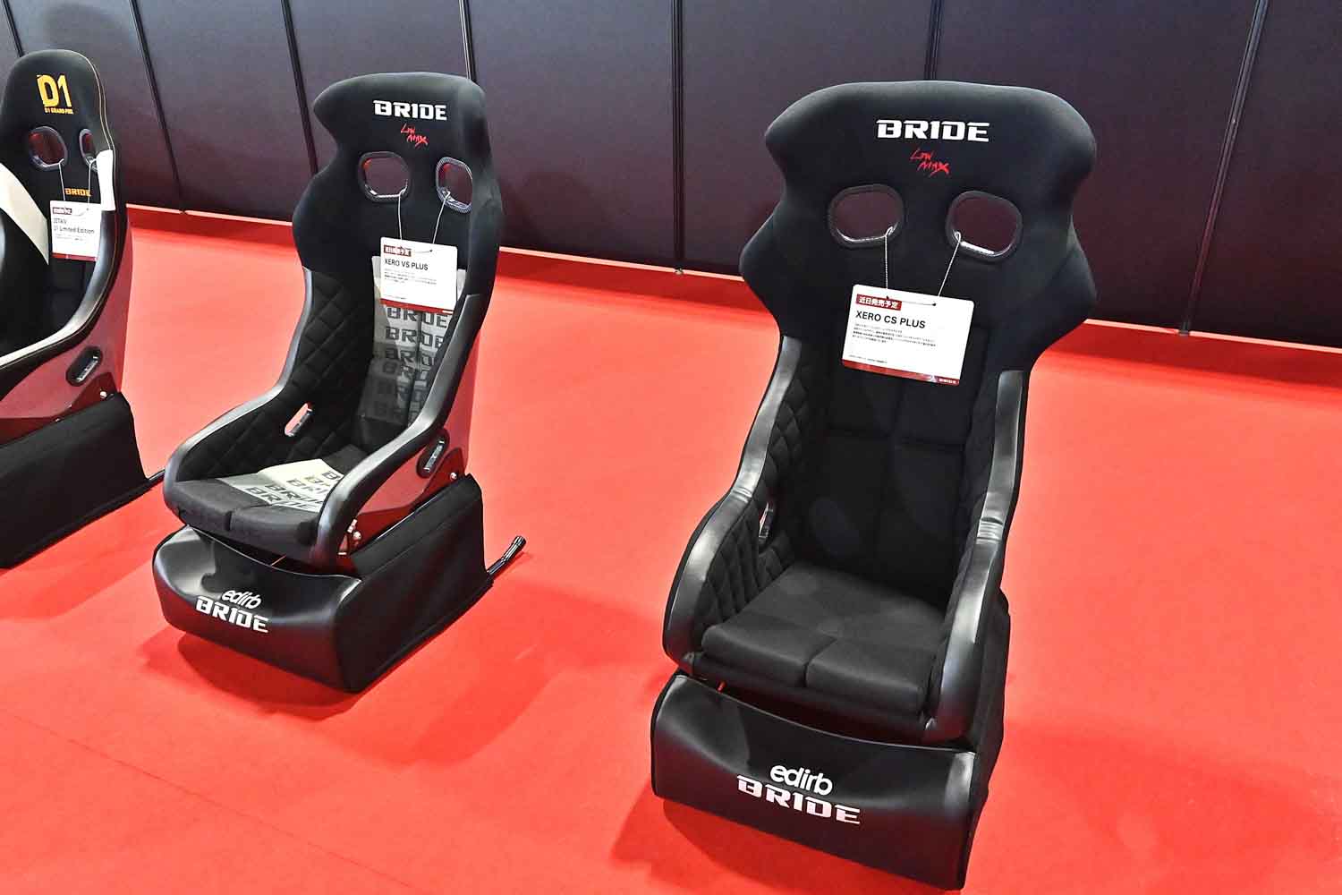 3つめは、ドリフト競技「D1グランプリ」とのコラボシート「ZETA Ⅳ D1 Limited Edition」である。フルバケットシートの定番「ZETA Ⅳ」をベースに、ブラック地の左右ショルダー部に太めのホワイトレザーをあしらったインパクトあるデザインで、派手なアクションが魅力のドリフト競技を想起させる。ロゴやステッチにはD1のキービジュアルカラーであるオレンジを用い、ドリフト好きには気になる逸品に仕上がった。D1とBRIDEの両オフィシャルサイト、全国のBRIDE販売店から購入が可能だ。