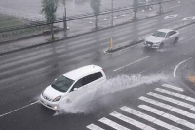 運転中に猛烈なゲリラ豪雨に遭遇したときの対処法は? 冠水路をゆっくり通過するのが正解?