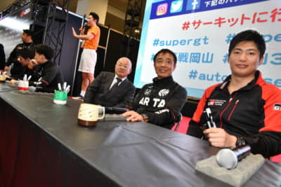 SUPER GTブースの現役レーサー・サイン会に板東GTA代表が飛び入り参加【大阪オートメッセ2020】